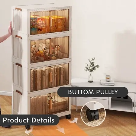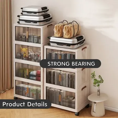5层多功能塑料收纳柜马来西亚是一款集实用性与美观于一体的家用收纳好帮手。它采用 可折叠设计,可在不使用时轻松收起,节省空间;磁吸门 开合顺畅,能有效防尘防潮,保护收纳物品洁净如新。底部滑轮 让移动更加灵活,即使装满物品也能轻松推动。坚固的 强承重结构 使其稳固耐用,不易变形。独特的 双向开门 设计让您无论从正面或侧面都能轻松取物。整体造型简约大方,适用于卧室、浴室、厨房或客厅,为您的家居空间带来整洁与格调。